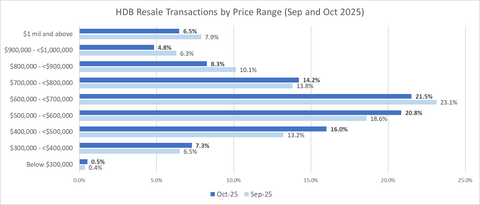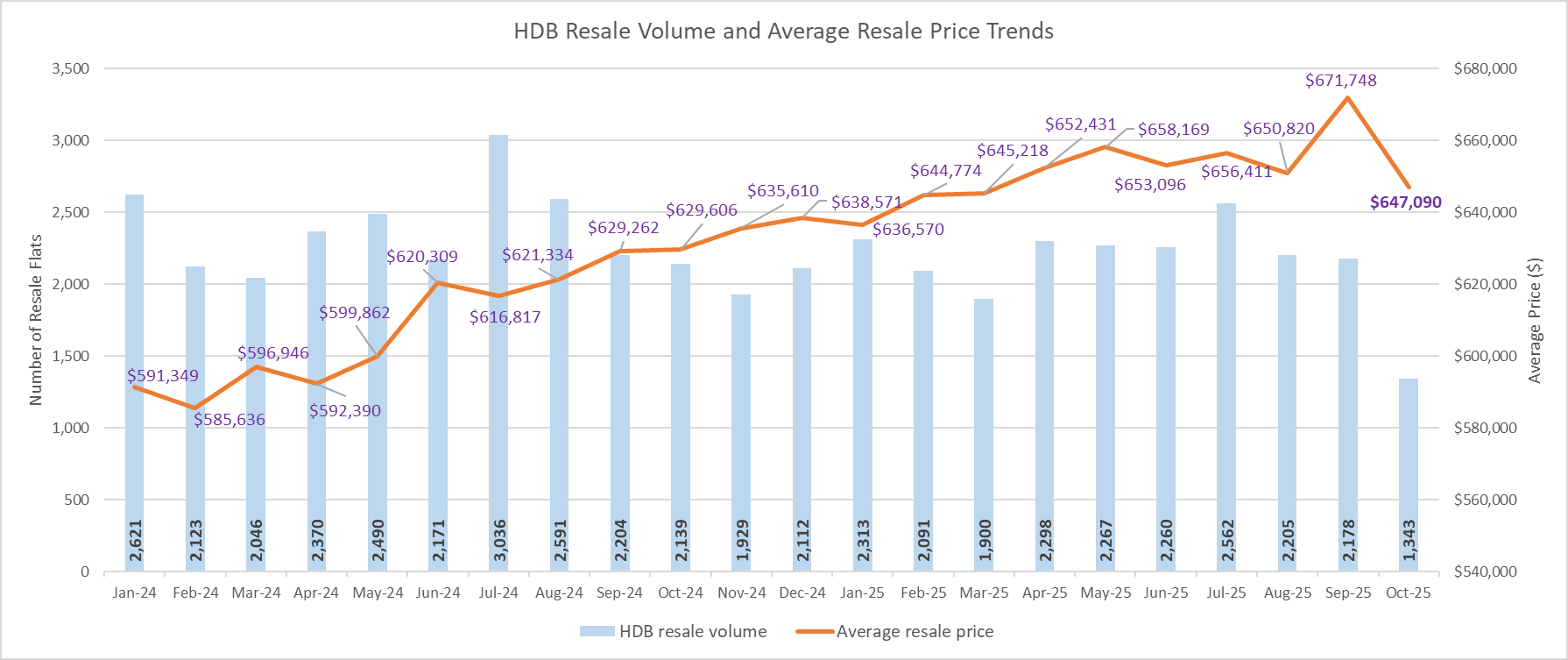HDB resale volume and average resale price slipped in October 2025